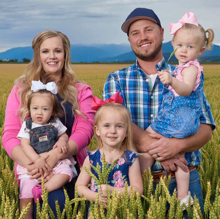 Despite not growing up on a farm, Jake Baum has been passionate about farming for as long as he can remember. He was raised in Highwood, Montana, nestled in a valley between the Missouri River and the Highwood Mountains, 29 miles outside of Great Falls. As a boy, he worked on a neighbor’s farm until he attended college at Montana State in Bozeman, where he earned a degree in wheat breeding. After marrying his high school sweetheart, Jenna, he worked in agribusiness in nearby Fort Benton before receiving a call six years ago to return to Highwood.